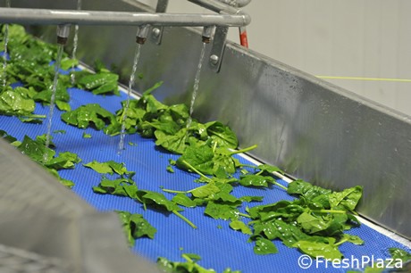 Phase de lavage des épinards préparés pour la quatrième gamme