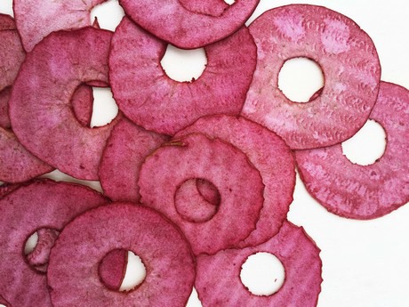 « A l'avenir, nous voulons également proposer des alternatives en plus de notre gamme standard, comme par exemple des chips de pommes combinées à un autre goût de fruits. Pour ce faire, les pommes sont d'abord placées dans un pot de jus de fruits, après quoi le processus régulier sera appliqué. De ce fait, les chips de pomme ont un goût de framboise, par exemple, et elles prennent une belle couleur rouge. Nous nous intéressons maintenant au produit naturel sans additifs », conclut M. Corneel.