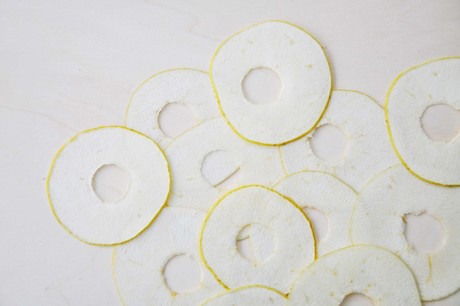 Bien que les pommes Greenstar conviennent très bien à la fabrication de croustilles de pommes, il est également possible d'utiliser d'autres variétés. « Beaucoup de variétés de pommes conviennent pour la fabrication de chips, à condition que les proportions soient bonnes. Jonagold est une option intéressante, même si elle est un peu trop douce », dit M. Corneel. Les chips de pommes de Fruit Layer's ont un temps de séchage beaucoup plus court que les autres. « Normalement, les frites sont cuites au four pendant quatre à huit heures, mais nous ne les faisons sécher que pendant 35 minutes. Les frites sont cuites et croquantes en 35 minutes, et la saveur et la couleur sont conservées. »