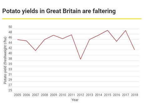 Les rendements des pommes de terre au Royaume-Uni semblent fléchir ; un expert pense qu'une concurrence sur les rendements comme celle du blé pourrait aider le secteur à se rapprocher des chiffres à trois chiffres sur les rendements. Les données de rendement de l'AHDB suggèrent qu'il y a eu un ralentissement dans le taux d'augmentation des rendements. Cela contraste avec le secteur de la betterave sucrière, par exemple, qui connaît toujours une forte tendance à la hausse.