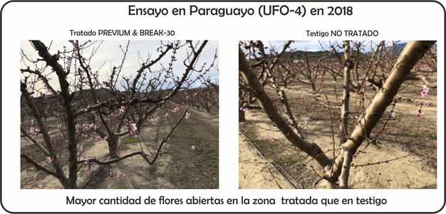 « Le premier objectif majeur recherché avec le traitement de PREVIUM® & BREAK 30® en cas de non réception de la quantité d'heures froides dont la plante a besoin, est de compenser le déficit en froid hivernal afin que l'arbre puisse briser la période de dormance et commencer à fleurir.