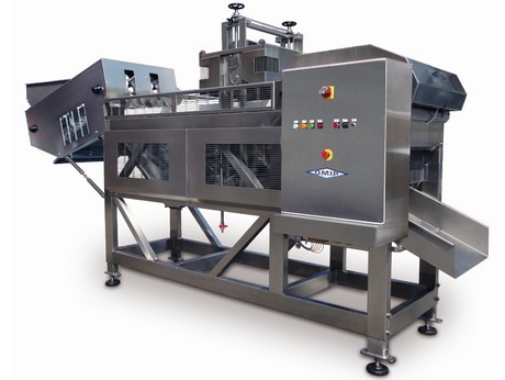 Toutes les parties en contact avec le fruit sont adaptées à des fins alimentaires et hygiéniques et la structure est entièrement en acier inoxydable. Les avocats, convenablement déchargés dans le Feeder, sont placés dans les canaux de la station d’orientation qui oriente les fruits et les positionne pour une coupe idéale au moyen de dispositifs appropriés et particuliers. La flexibilité des éléments d'orientation permet à la machine de compenser d'une manière automatique les différences dans les fruits qui ne sont pas parfaitement classés.