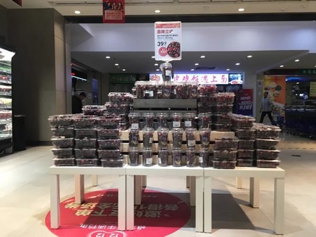 « Actuellement, nous constatons que les cerises sont les produits les plus vendus dans nos magasins. Après les cerises, les fraises se portent très bien sur le marché. C'est aussi un beau produit à offrir en cadeau, ou à consommer soi-même. La Chine n'est pas en saison maintenant pour les fraises, mais nous obtenons notre approvisionnement de nos partenaires dans les serres, nous sommes donc en mesure d'offrir à nos clients des fraises, même quand ils sont hors saison. D'autres produits très populaires sont les oranges, les pommes, les fruits du dragon et les kiwis. »