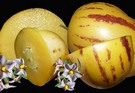 Le Pépino, aussi appelé poire-melon, trouve son origine dans les vallées chaudes des montagnes du Pérou et de la Colombie. Aujourd'hui, cependant, il est également cultivé dans de nombreux autres pays d'Amérique du Sud, aux États-Unis et en Nouvelle-Zélande. Le fruit appartient à la famille des Solanaceae et pousse dans les basses terres arbustives. Les Pépinos peuvent atteindre 10 à 20 centimètres de long. La forme et la couleur du fruit peuvent varier beaucoup, de pointu à long comme des bananes ou à côtes comme une tomate charnue. Le zeste peut être de couleur crème à jaune citron, avec des rayures pourpres ou violettes.