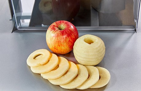 L'AS 6 est optimisée pour la production de grandes capacités jusqu'à 900 pommes par heure et est donc environ 50 % supérieure à la capacité de l'éplucheuse de pommes AS 4 bien établie. L'AS 6 a également été spécialement conçue d'un point de vue ergonomique.