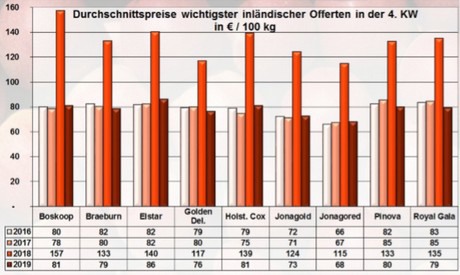 La disponibilité était limitée, mais cela n'avait que très rarement un impact sur les devis. Dans la plupart des cas, les produits sont restés au niveau précédent, les intérêts ayant également diminué. Pendant ce temps, à Francfort, les prix du de la Honeycrunch hollandaise étaient un peu plus bas. Les basses températures à Hambourg ont sensiblement ralenti l'accès des clients. A Cologne, certaines pommes sont devenues de plus en plus farineuses. A Munich, la saison des Rubinettes domestiques prit progressivement fin.