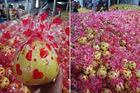 Pamplemousse enveloppé dans du plastique festif avec des cœurs rouges