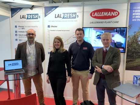 L'équipe de Lallemand plant care s'apprête à commercialiser cette année une toute nouveau traitement post-récolte pour les fruits à noyau, qui permettrait de réduire les pertes au niveau de la récolte de 50 %. Le nom du produit est LALFRESHs.