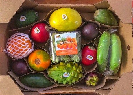 Comme nous l'avons mentionné, le Fruit Mix contient des fruits exotiques de Colombie, dont un Feijoa, Granadilla, Uchuva (Physalis, ou groseilles à maquereau), Lulo, Gulupa (un type de fruit de la passion), Mangoustan, Tamarillo, Higo (figue), Maracuya (passionfruit), Pitahaya, Curuba (ou passion de banane) et un Bananito (une petite banane). Il a d'abord été commercialisé en Europe, avec l'idée que les consommateurs pourraient découvrir des fruits qu'ils n'achèteraient pas en temps normal.