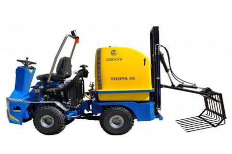 L'une des caractéristiques les plus importantes de la Tizona 35, développée par la société espagnole Carretillas Amate, est que les structures avant et arrière sont reliées au moyen d'un mécanisme de charnière et qu'elle est également équipée d'un système d'aide à la manœuvre pour les équipements de traction. La Tizona 35 est équipée d'un moteur diesel de 18,5 kW et d'une buse de 50 litres à 40 bars.