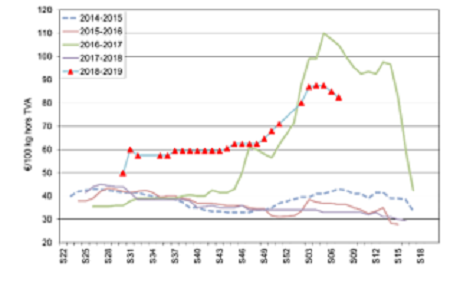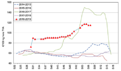 - Le marché est à la fois calme et tendu. Il y a peu de vendeurs, ceux-ci n’osant pas engager des volumes avant de savoir où ils en sont dans leurs contrats (et les tares qui vont avec…) ou, voulant de meilleurs prix. Les acheteurs trouvent les volumes nécessaires avec leurs contrats et les éventuelles sur-tonnes. Certains transformateurs travaillent « vollebak » et à flux tendu avec de bonnes ventes de produits finis. Pour d’autres c’est exactement l’inverse, avec des stocks de produits finis qui s’accumulent. Certaines usines vont travailler plus avant le Brexit, les grossistes britanniques voulant faire des réserves avant la date de sortie des anglais de l’Union Européenne.