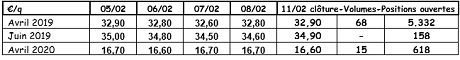 Marchés physiques européens : récapitulatif des cours (source : NEPG)