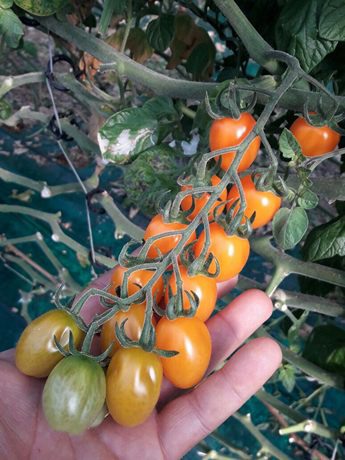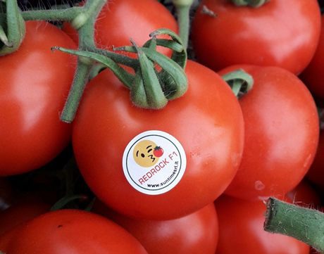 « Nous sommes parmi les premiers à présenter une petite tomate orange oblongue qui peut être récoltée à la fois en un seul fruit ou en grappes. Le nom commercial est Chick (sur la photo ci-contre). »