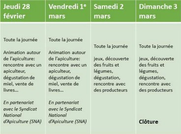 L’accent sera également porté sur la pédagogie autour d’une agriculture vertueuse et responsable, nécessaire à une alimentation équilibrée favorable à la santé des hommes et de l’environnement. L’approche sera principalement ludique, avec jeux et animations ravissant les petits et les grands.