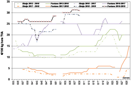 Plant de Bintje : Plant hollandais, classe A, rendu mars 2019, par 5 tonnes, en sacs, hTVA : Peu de transactions, prix en réelle baisse.