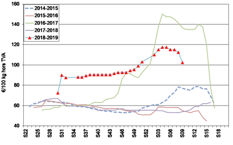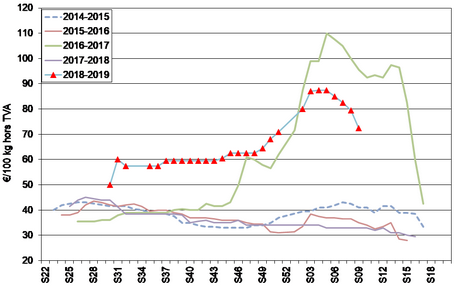 En période de départ champs, il faut retirer 1,00 €/q à ces prix pour frais de triage