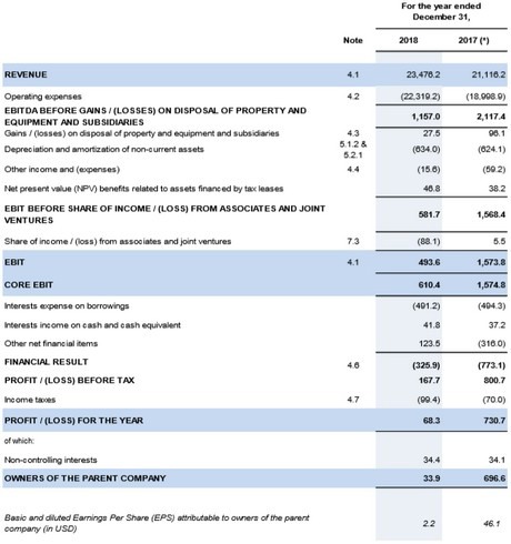 CMA-CGM a pu afficher des résultats records en termes de chiffre d'affaires, qui ont augmenté de plus de deux milliards de dollars US, passant de 21 116 millions USD en 2017 à 23 476 millions USD en 2018.