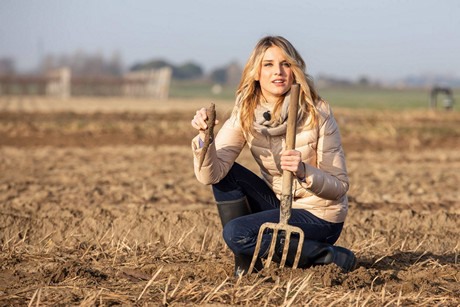 Elisa Silvestrin dans des champs de carottes violettes à Sipo