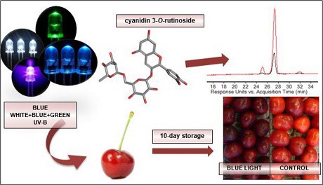 Une étude de l'Université de Ljubljana (Slovénie) a montré comment les longueurs d'ondes lumineuses peuvent influencer la qualité des cerises en chambre froide. L'irradiation à la lumière bleue a augmenté la teneur en anthocyanine, tandis que la lumière bleue et la lumière blanche-bleue-verte ont augmenté l'activité de la phénnylaline ammoniaque lyase (PAL). Les chercheurs ont en effet trouvé une forte corrélation entre le PAL et les anthocyanines.