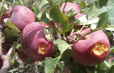 Dégâts causés par la grêle sur Early Red One dans le Klein-Karoo (photos fournies par Pierre Burger)