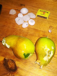À Koovallei, dans certaines exploitations, les producteurs n'ont pas hésité à reporter le début de la récolte des poires Forelle lundi dernier à cause de la pluie, mais cette même nuit la grêle, accompagnée d'un tonnerre particulièrement intense, a réduit la qualité du jus des fruits dans certains blocs de la Forelle, ainsi que pour les pommes rouges. Ailleurs dans cette zone de prunes tardives, des récoltes entières ont été arrachées par la grêle cette nuit-là.