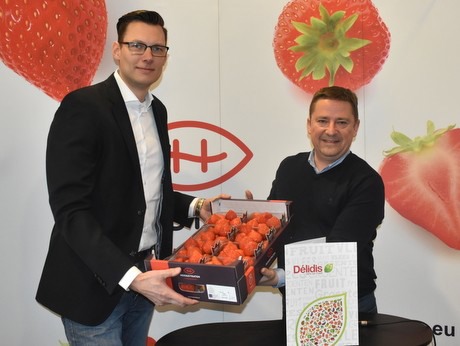 Max Verheijen et Jef van Echelpoel de Delidis avec leurs fraises récemment achetées.