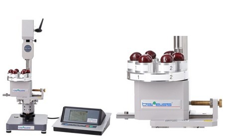 Tout a commencé avec le test de maturité des avocats et des mangues. Comme seuls des duromètres manuels sont disponibles sur le marché à ce jour, Seeobst a développé, en collaboration avec Bareiss, un appareil de mesure de la résistance de la chair des fruits basé sur le Digi test II de haute précision. Jusqu'à 6 fruits sont placés sur la table de rotation (voir Fig. 1) et la prise de mesure démarre à la pression d’un simple bouton. L'appareil vérifie automatiquement les 6 fruits et affiche les valeurs mesurées ainsi que certains calculs statistiques sur l'écran électronique. L'appareil est facile à utiliser et, selon Bareiss, se caractérise par sa grande reproductibilité.