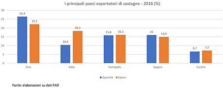 Les principaux producteurs européens sont la Turquie (29,3 %), l'Italie (24,3 %), la Grèce (16,7 %), le Portugal (13,9 %) et l'Espagne (7,3 %). Les données de la Fao sur la production italienne sont basées sur des données historiques, car l'Istat ne collecte pas de données sur la production intérieure de châtaignes depuis 2008. Elles ne représentent donc pas la situation actuelle de la production italienne.