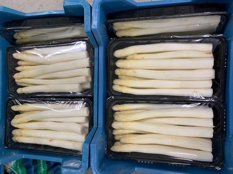 « La saison des asperges de cette année a commencé très tôt. Nous avons eu une semaine de produit péruvien, puis nous avons immédiatement commencé avec le produit belge. La demande est très élevée et les prix sont très bons. Nous vendons un kilo d’asperges épluchées à 7,25 euros, c’est un bon prix pour cette période de l’année », explique Geert Baecke de Tino’s Fruit. « Nous achetons nos asperges à Malines, en Belgique, et elles sont de bonne qualité. Nous avons essayé les asperges néerlandaises à quelques reprises, mais elles sont trop minces pour nos clients. »