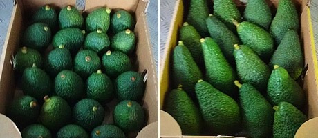 Deux variétés, cultivées en Ethiopie : A gauche les avocats Hass communs, à droite la variété Pinkerton.
