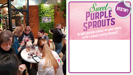 Outre les études de consommation, les partenaires commerciaux participants ont envoyé des échantillons à leurs clients. Les réponses des consommateurs et des clients de la vente au détail et des services alimentaires ont été positives. C'est pourquoi il a été décidé de développer une marque et un logo : Sweet Purple Sprouts. Sandra : « Ce nom exprime clairement ce qu'est le produit, un beau germe violet avec un goût sucré et un goût de noix. »