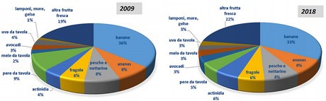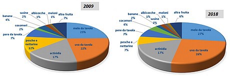 Selon le dernier rapport Ismea, les exportations de fruits frais (agrumes et fruits à coque exclus) ont atteint 2,5 milliards d'euros en 2018, bien qu'elles aient diminué par rapport à l'année dernière en raison de la baisse des stocks de quelques produits importants comme les pommes et les kiwis.