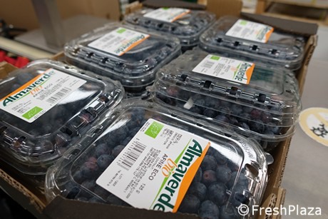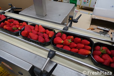 Conditionnement de fraises biologiques sous la marque Almaverde
