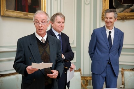 Le professeur Swennen entre en scène, accompagné du directeur général de la KU Leuven, Koen Debackere, et de Juan Carlos Restrepo, directeur général de Bioversity International. | © KU Leuven - Rob Stevens