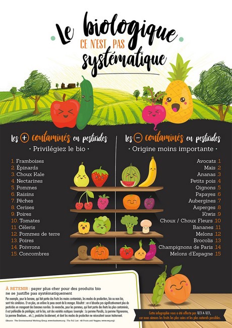 L'entreprise Alex & Alex a réalisé une infographie sur les fruits et légumes les plus et les moins contaminés en pesticides. Cette infographie aidera les consommateurs à choisir entre un produit bio et un produit non bio. Le biologique est-il le meilleur garant de la qualité d'un fruit ou d'un légume ?