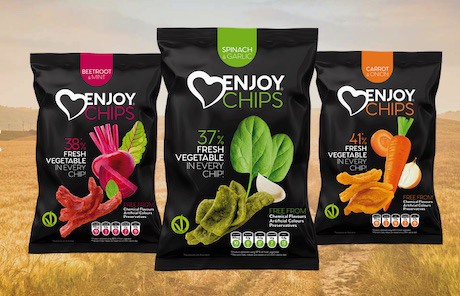 Avec Enjoy Chips, l'objectif est de fournir une collation fonctionnelle en n'utilisant que des légumes entiers produits selon un procédé naturel et sans affinage.