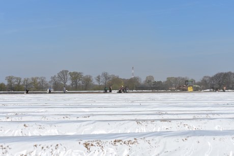 La récolte chez le producteur Bries-Tijskens a commencé le 7 mars et 20 % des asperges ont été récoltées. En raison du gel récent, 10 % des asperges ont été perdues. Le producteur plante chaque année une récolte d'asperges blanches et vertes. Selon le producteur, il est important que l'asperge reste un véritable légume de saison. « Les asperges sont un vrai légume de printemps, il faut donc qu'il y ait des asperges pendant trois mois. » Maire d'Oudsbergen Lode Ceyssens, Steven Mattheï maire de Peer ainsi que Wouter Beke maire de Leopoldsburg