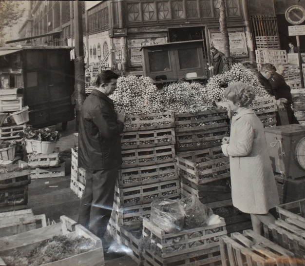 Parmi les bouteilles de vin d’une cave joliment agencée, Antoine évoque les souvenirs immortalisés par d’authentiques photos en noir et blanc qui ornent les murs. Des instants volés qui témoignent de cette époque passée de quelques décennies, mais qui pourtant, semble si lointaine : « A 22h, nous déchargions la marchandise que l’on étalait sur les trottoirs, à même le sol. Et à l’époque, il n’y avait pas de chambre froide ». Le marché se tenait jusqu’à 9h le matin, où les premiers coups de balais sonnaient la fin d’une nuit de travail acharné.
