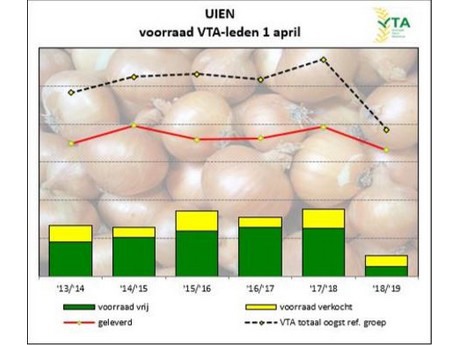 De plus, 53 % du reste du stock d'oignons a déjà été vendu. La saison dernière, 71% du stock était encore disponible. En conséquence, cette saison, seulement 6,6 % de la récolte est encore disponible en stock libre. Ceci, alors que la récolte était déjà inférieure de 35 % à celle d'une saison normale. En moyenne, au cours des saisons précédentes, 20 % de la récolte était encore disponible en stock libre.