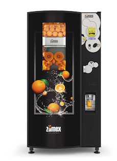 De plus, les nouveaux distributeurs automatiques Natural Vending disposent d'un nouveau système de nettoyage programmable dans le temps ou en nombre de jus, sans besoin de prise d'eau. De même, les distributeurs automatiques ZUMEX® améliorent le service du jus grâce à un nouvel affichage plus intuitif qui permet aux clients de servir le jus en fonction du nombre d'oranges utilisées ou par un système précis de remplissage de la tasse qui permet de servir une quantité exacte de jus.