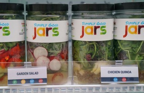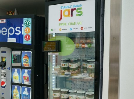 Les salades, ainsi que les compléments comme le poulet biologique et les desserts, sont disponibles grâce au nouveau partenariat de Jefferson avec Simply Good Jars, une entreprise de l'ouest de Philadelphie qui vend des repas frais prêts-à-manger et des collations en pots réutilisables. Les repas sont stockés dans des « réfrigérateurs intelligents » avec des capteurs qui détectent ce qui est acheté. Les clients achètent de la nourriture en glissant une carte de crédit, puis retournent les pots.