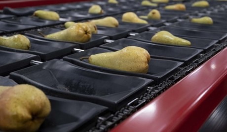 La machine Cup XL est conçue pour traiter les gros produits grâce aux larges brosses et gobelets séparateurs. La poire allongée tourne parfaitement sous l'appareil photo pour une image 3D complète du produit sans endommager le précieux fruit. La transition du séparateur au support est fluide, douce, précise et silencieuse. Le gobelet 330 est spécialement conçu pour les poires allongées et peut également traiter des produits ronds. Les produits se positionnent de manière plus stable dans les gobelets, permettant de les peser avec une meilleure précision. Grâce à la conception mécanique redessinée, une vitesse de machine de 5 produits par seconde peut être atteinte.
