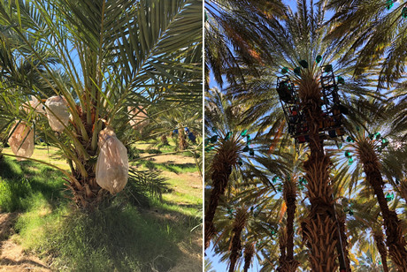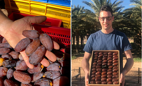 Dates qui viennent d'être récoltées, à gauche ; Laurent La Morella, à droite.