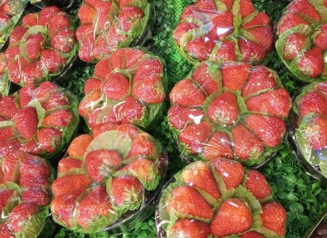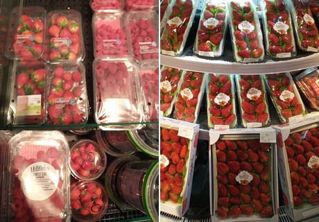 A droite, des fraises néerlandaises et à gauche des fraises chinoises.