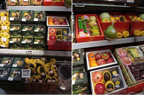 La présentation des fruits est également très différente lorsqu'on compare les supermarchés en Chine et, par exemple, dans un pays européen. En Chine, la plupart des produits sont emballés dans du plastique ou du carton, tandis que les produits individuels sont presque tous scellés dans du plastique. C'est pour mieux préserver les biens et les protéger des meurtrissures. De plus, une grande attention est accordée à la conception de l'emballage, ce qui est très important pour la vente des produits, car les consommateurs chinois se soucient aussi beaucoup de la façon dont les produits sont présentés. En Chine, il est tout à fait normal d'offrir des fruits à quelqu'un, c'est pourquoi certains emballages en carton conçus spécialement sont aussi très populaires sur le marché chinois. Ceux-ci sont élaborés de manière à ce que vous puissiez les offrir directement à quelqu'un. En Europe, ce n'est pas le cas ; il n'y a pas beaucoup de supermarchés qui ont des paniers de fruits préemballés à offrir comme cadeau.