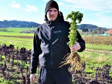 Stefan Brunner, de Spins près d'Aarberg, est un agriculteur qui cultive des légumes « Leaf to Root ». Lui aussi se demandait pourquoi tant de morceaux de légumes comestibles étaient jetés.