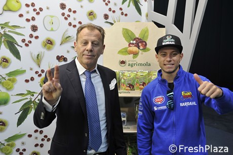Agrimola sponsorise un pilote de moto supersport. Gauche, Luca Sassi