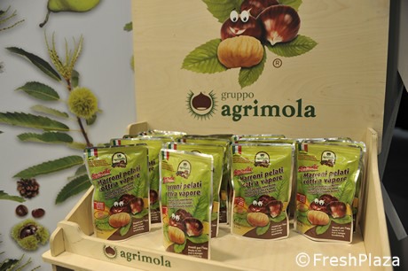 Agrimola de Casalfiumanese (Bologne), une entreprise qui produit environ 15 mille tonnes de châtaignes fraîches par an, a récemment lancé un nouveau produit - la châtaigne pelée cuite à la vapeur dans des sacs qui gardent la fraîcheur.