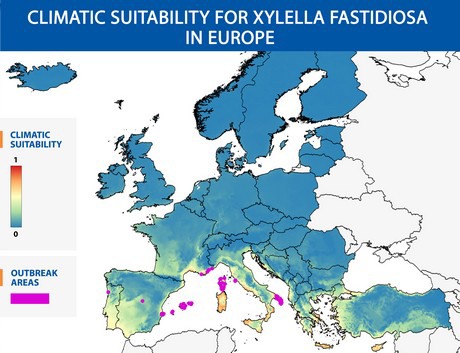 Le panel phytosanitaire (PLH) de l'EFSA a utilisé la modélisation informatique pour simuler comment le X. fastidiosa se dissémine sur de courtes et longues distances dans différentes conditions. La modélisation a montré l'importance de la mise en œuvre de mesures de contrôle, telles que celles spécifiées par la Commission européenne, pour prévenir une nouvelle propagation et même éradiquer les foyers. Elle a illustré l'efficacité relative de l'utilisation de zones tampons de différentes tailles pour contrôler une zone infectée.