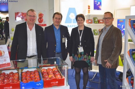 L’équipe d’Albafruit au Fruit Logistica 2019. De gauche à droite : Christophe Ochs, Éric Ségur, Dominique Monfraix et Laurent Martinet